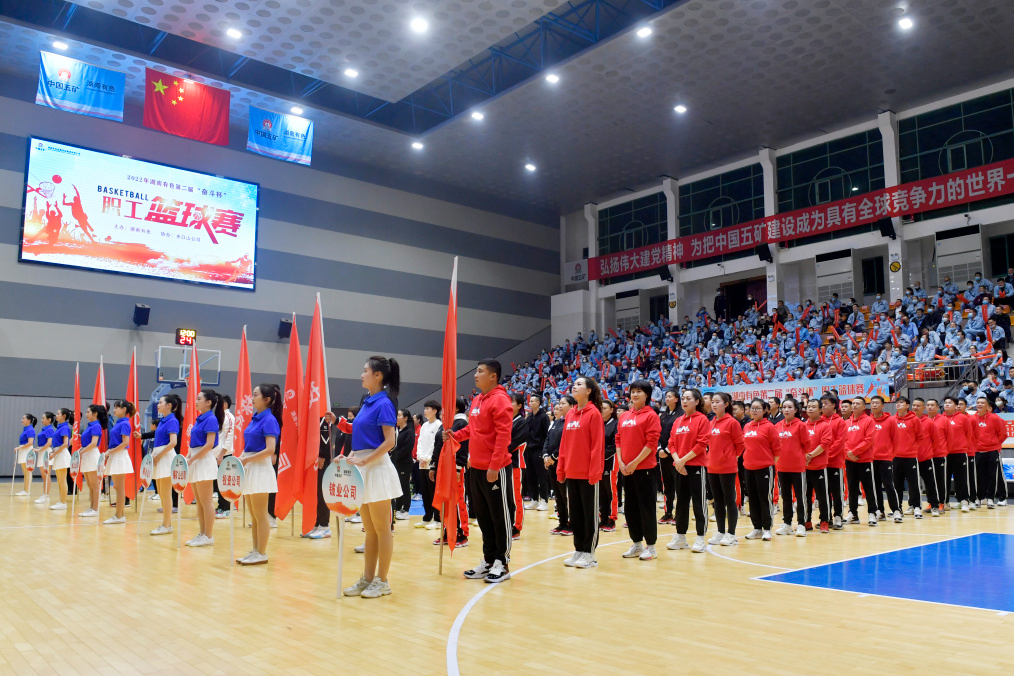 来自机关一置业、水口山公司、株冶公司,黄沙坪公司,锡矿山、投资公司,铜业公司、铍业公司8支篮球队踏着欢快的运动员进行曲逐一人场,矫健的步伐,昂扬的舞蹈,把气氛推向高潮。