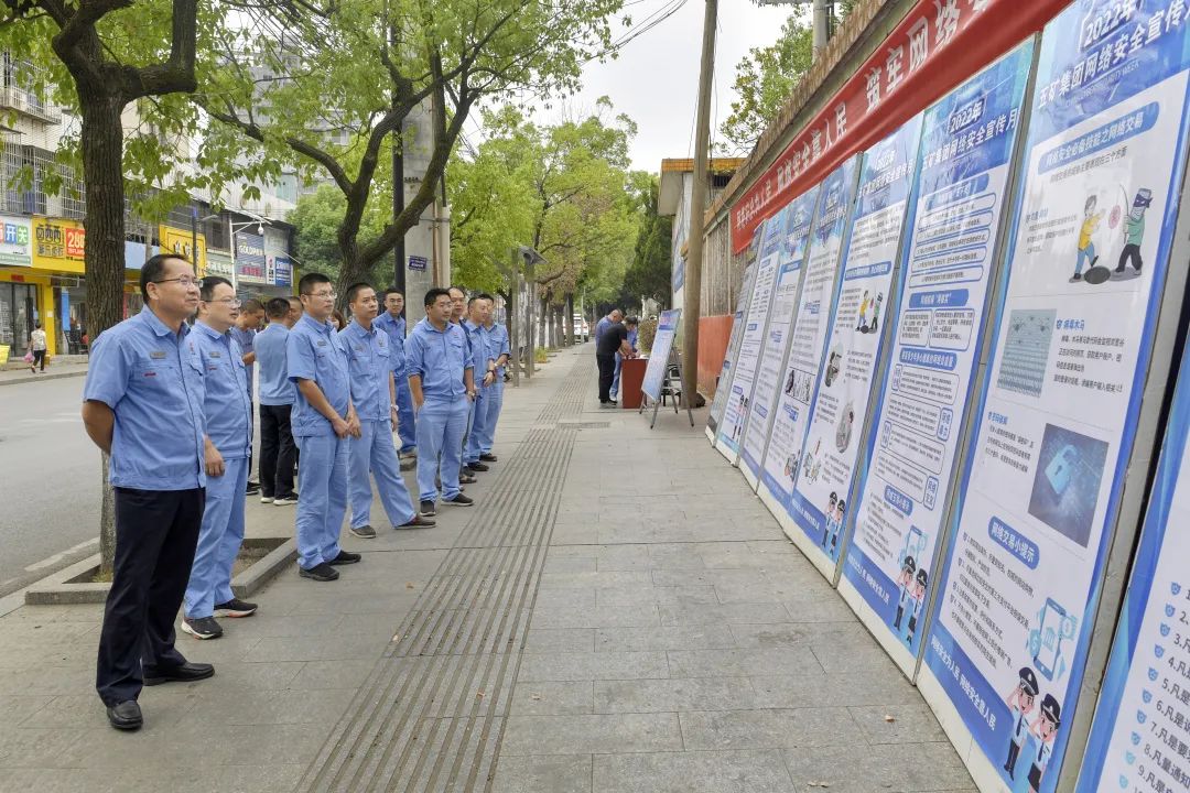公司领导黄安平、夏中卫、翟富明、唐志波、曹晓扬到活动现场签名,并观看了《坚如磐石》的网络安全宣传片和网络安全系列主题宣传展板。