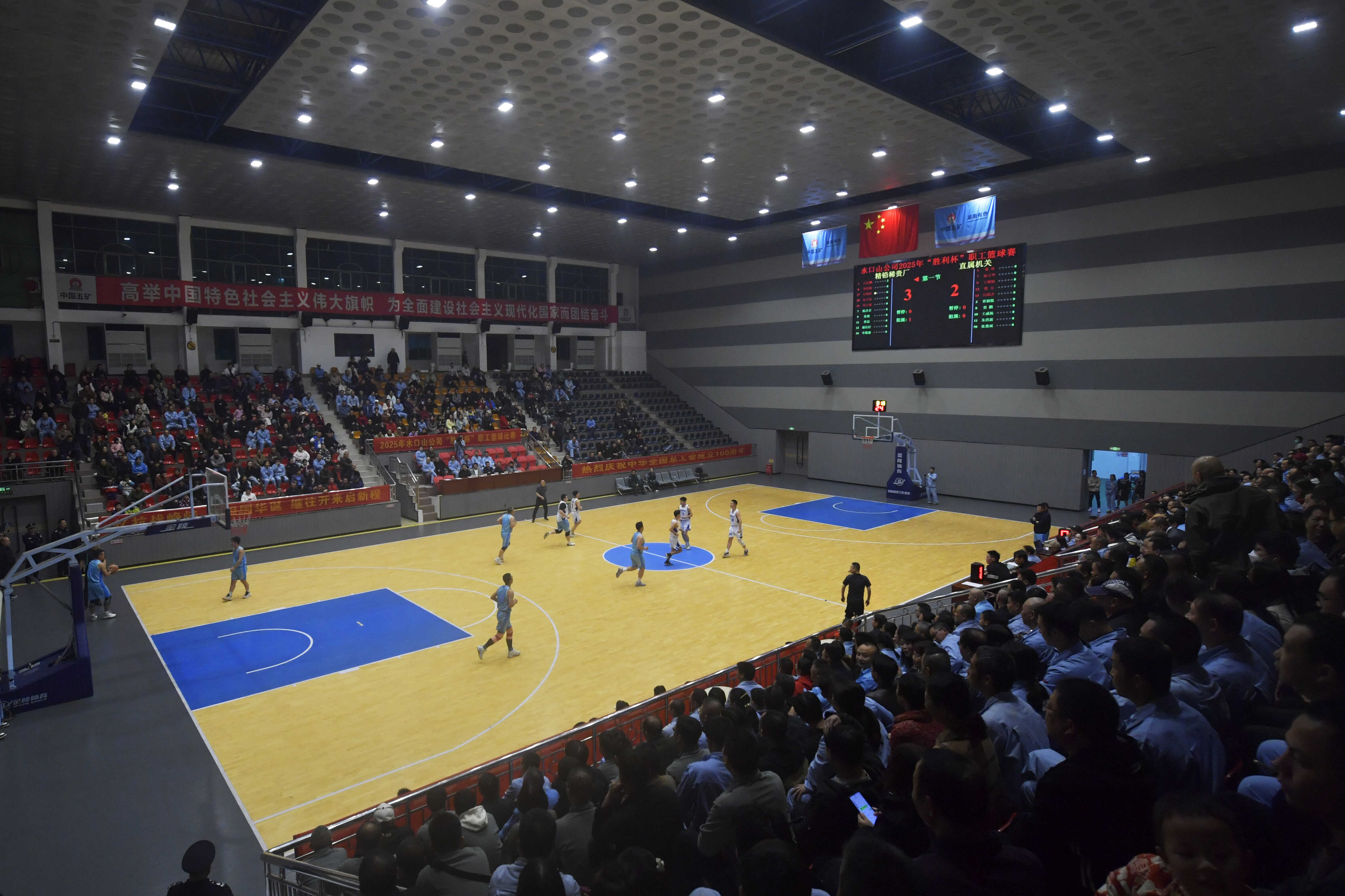 11月11日晚,工人文化宫内灯火通明、掌声雷动,公司2025年“胜利杯”职工篮球赛冠军争夺战在此激烈上演,最终精铅稀贵厂代表队凭借更胜一筹的实力与韧性,战胜直属机关代表队首次夺得冠军,为赛事画上圆满句号。公司领导闫友、曹晓扬、李伟亮、赵晓林、王运永出席闭幕式,各单位职工及家属共同见证荣耀时刻。